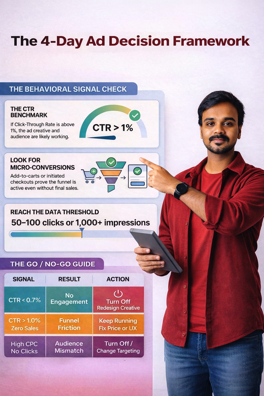 ₹4000 isn’t a “loss”; it’s the cost of clarity. Killing campaigns at this stage doesn’t make you disciplined; it makes you blind. Ads don’t fail in 4 days — decision-making does.